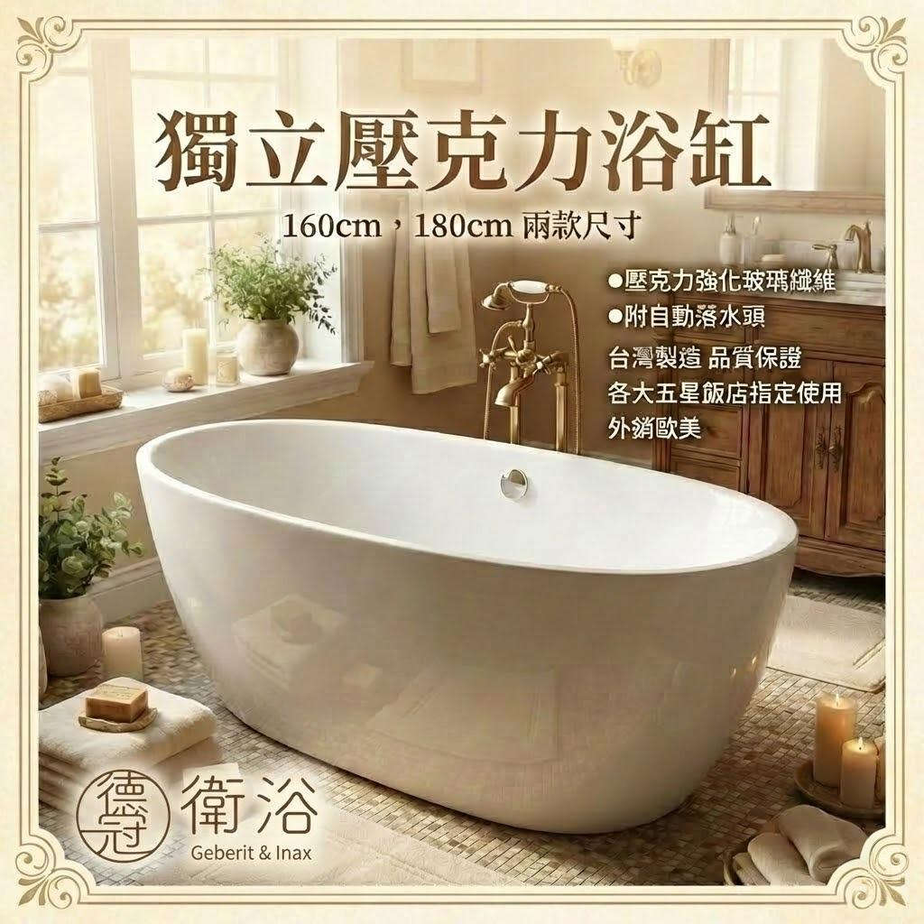 一體成型無接縫 壓克力獨立浴缸 160/180cm