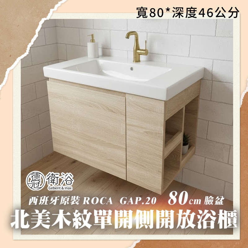ROCA GAP.20 80公分 北美原橡木紋浴櫃 側開式