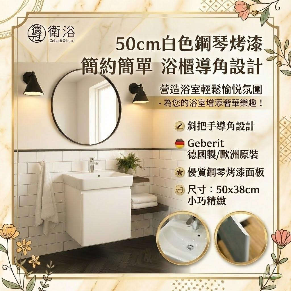 Geberit Renova 50公分 白色鋼烤臉盆浴櫃