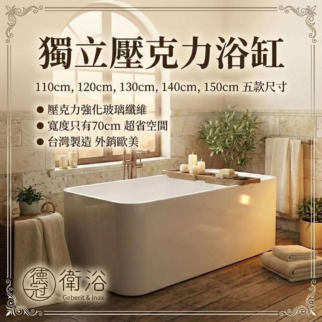 長度有120cm到150cm款壓克力獨立浴缸