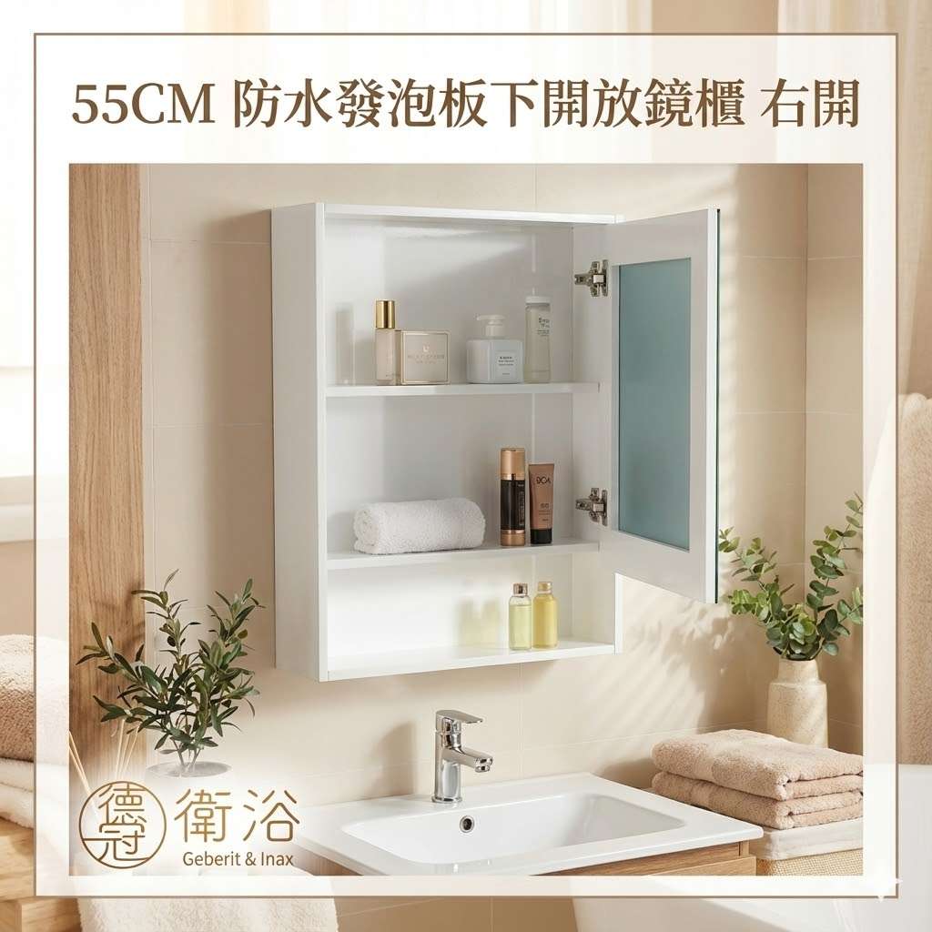 簡約大方 鏡櫃55CM 白色 下開放式 右開